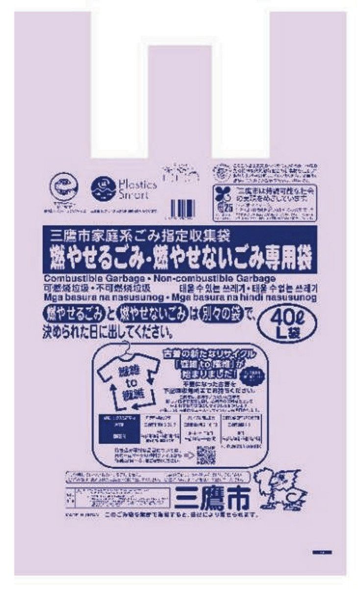 バイオマス製品普及推進功績賞に選ばれた三鷹市の指定ごみ袋=同市提供