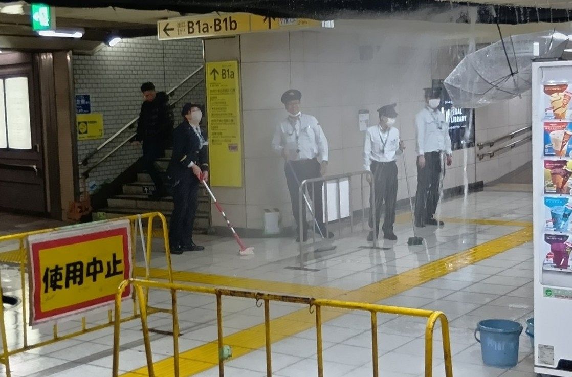 東京メトロによると、漏水の原因は不明だが、水は汚水ではなく上水で、電車の運行に影響はないとして、運休や遅延などはなかった。同日午後6時40分ごろ現場に続く出入り口を封鎖した。同9時前に漏水は止まったという。