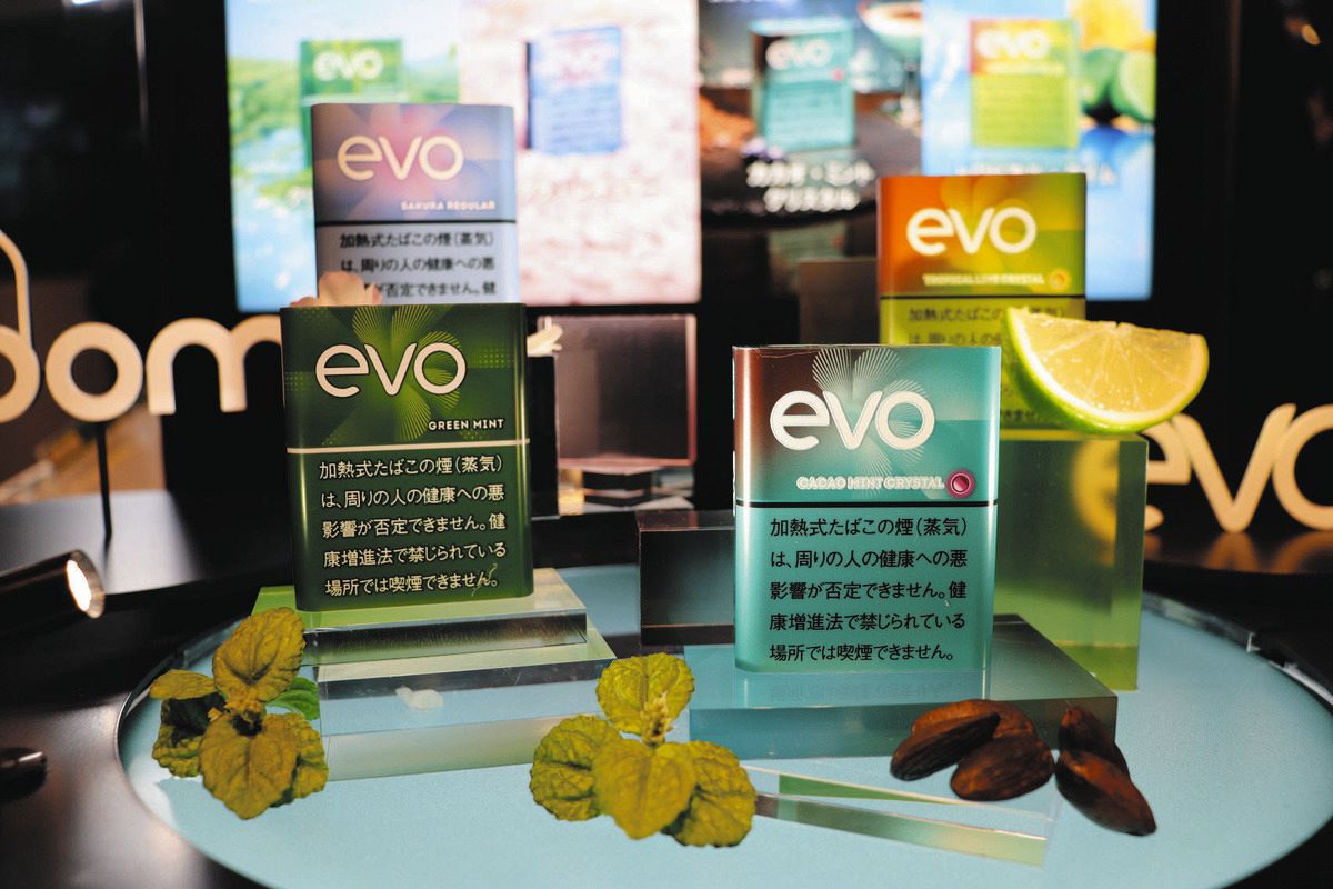 新フレーバーは、同日から発売した「エボ・グリーン・ミント」と「エボ・カカオ・ミント・クリスタル」、2月3日から発売する「エボ・トロピカル・ライム・クリスタル」と「エボ・サクラ・レギュラー」。CLUB JTオンラインショップと、銀座店や名古屋店(名古屋市中区)などのPloom Shopで限定発売する。いずれの銘柄もスティック20本入りで550円。