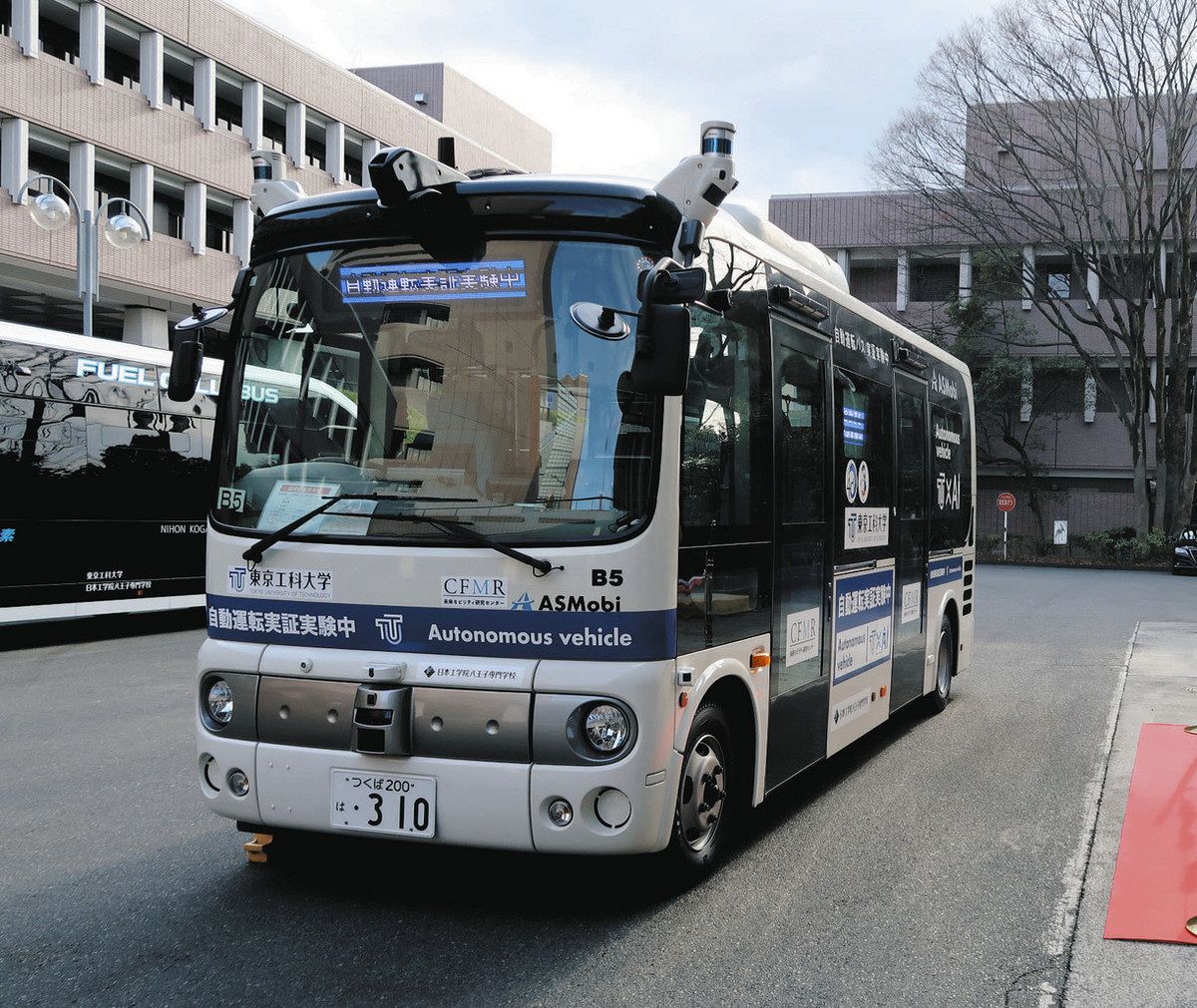 実験は、八王子キャンパスと最寄りのJR八王子みなみ野駅との往復計約4キロで実施。日野自動車の車両に、東京大発ベンチャー「先進モビリティ」(茨城県つくば市)が開発したシステムを搭載する。