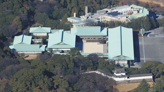 皇居宮殿、奥は宮内庁(資料写真)