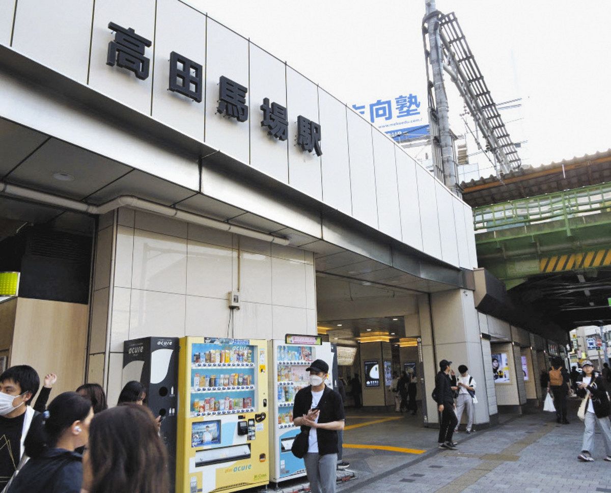 壁画前のJR高田馬場駅早稲田口=東京都新宿区で