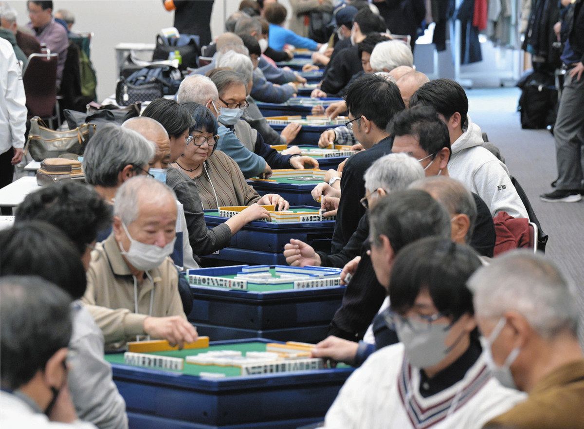 高齢者の健康増進を目的に広がる健康マージャンの腕自慢がそろう「健康麻将(マージャン)全国大会」(明治安田生命保険相互会社協賛、厚生労働省後援)が22日、東京都の品川区立総合区民会館「きゅりあん」であり、164人が参加した。